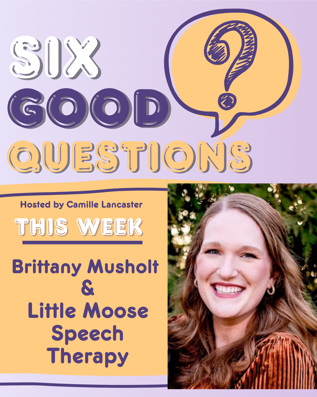 As an SLP, Children’s Author, and Host of the Six Good Questions Podcast – Camille believes everyone of us has thoughts in our head and our words matter. She hopes to share great conversations which inspire us to do good things in the world.